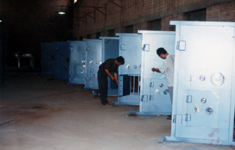 武邑縣龍牌柜業有限公司原名“武邑縣金屬櫥柜廠”(黑龍港牌),由于增加注冊資金改名為“河北省龍牌保險柜總廠”,于2003年企業升級為"武邑縣龍牌柜業有限公司,我廠已有三十年的生產歷史,是專業生產不銹鋼金庫門、移動金庫的廠家。廠區占地面積42154平方米,建筑面積16861平方面,設備齊全,年產量可達3萬臺(套)。